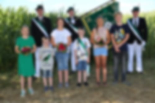 Die Ehrendamen Mia Terhorst und Charlotte Köchling und die Ehrenherren Max Fehmer und Erich Benning komplettieren den Kinderthron.